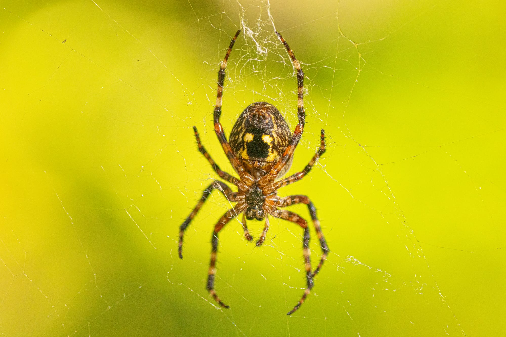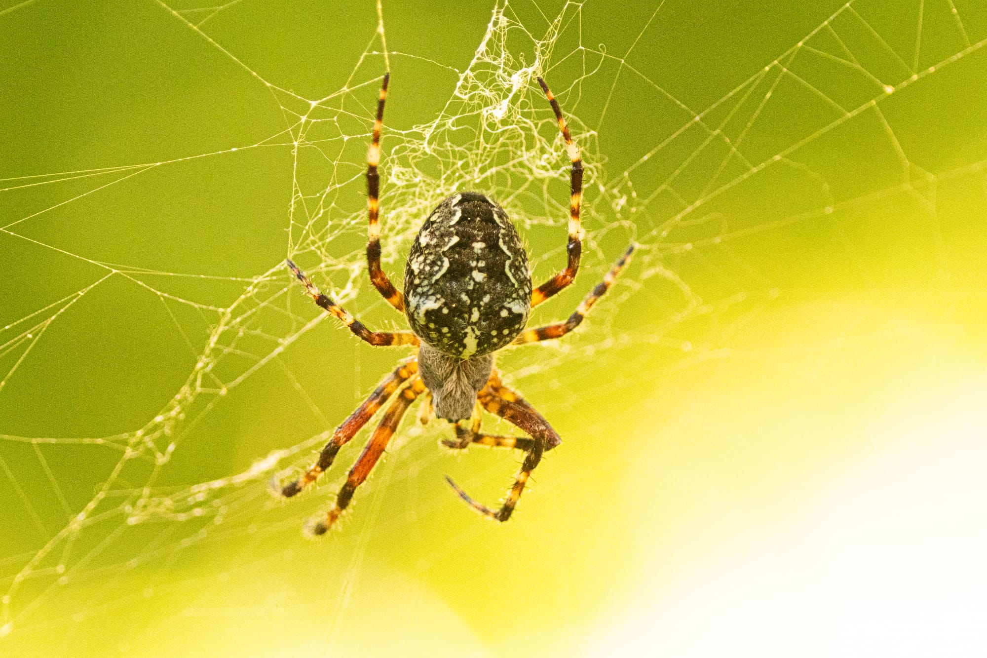 Female orb weaver spiders are especially conspicuous because they are large and sit in the middle of prominent webs. Photos by David Lukas