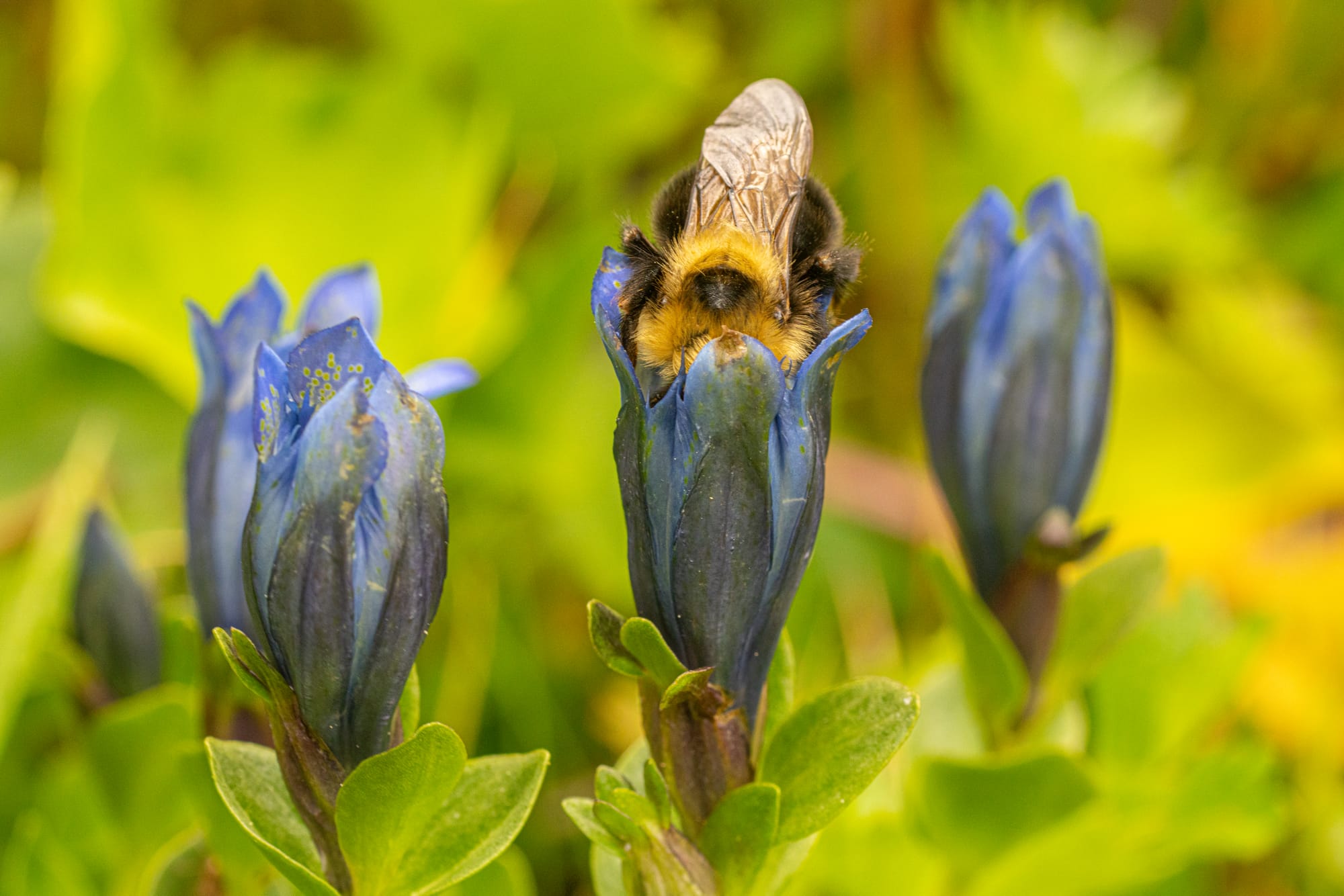 We loved finding meadows of explorer's gentian (Gentiana calycosa) this week. Check out the bumble bee sleeping in one of the flowers. Photos by David Lukas