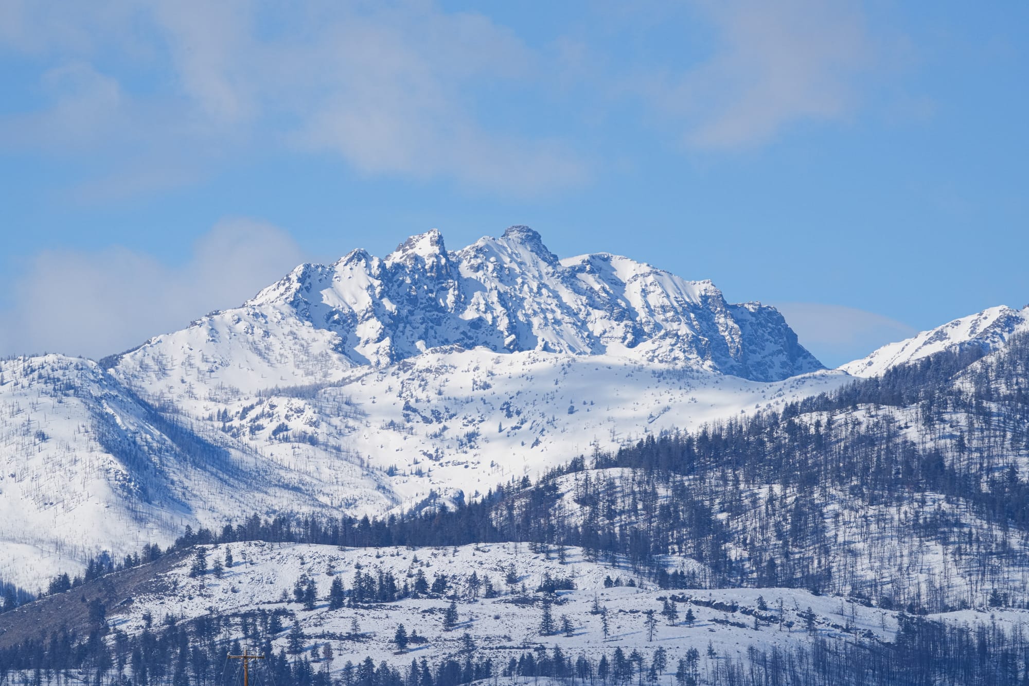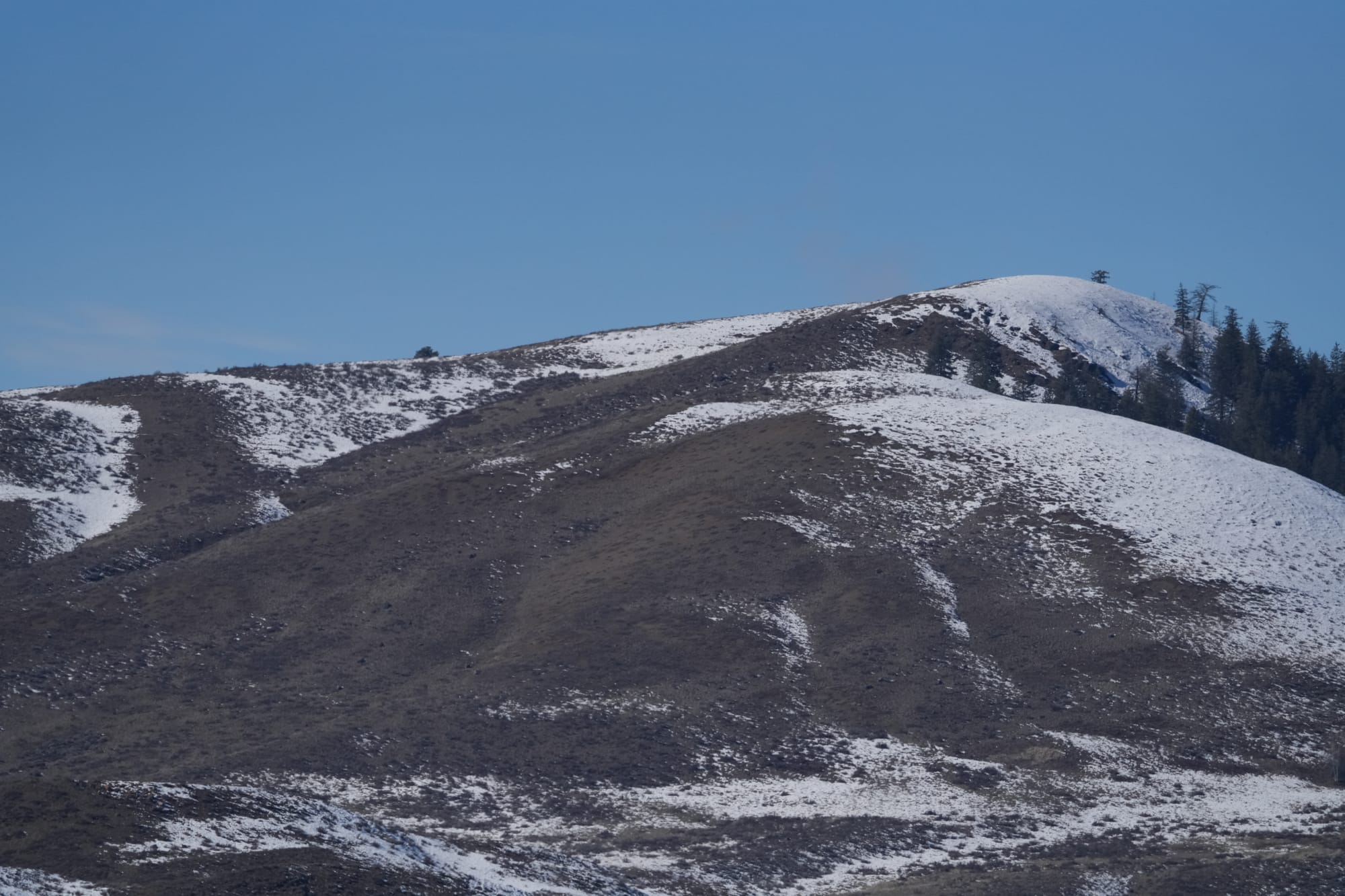 These two images capture the mercurial nature of this year's winter: Deep snow at high elevations on Gardner Mountain, and bare hills around the valley, including Lewis Butte. Photos by David Lukas