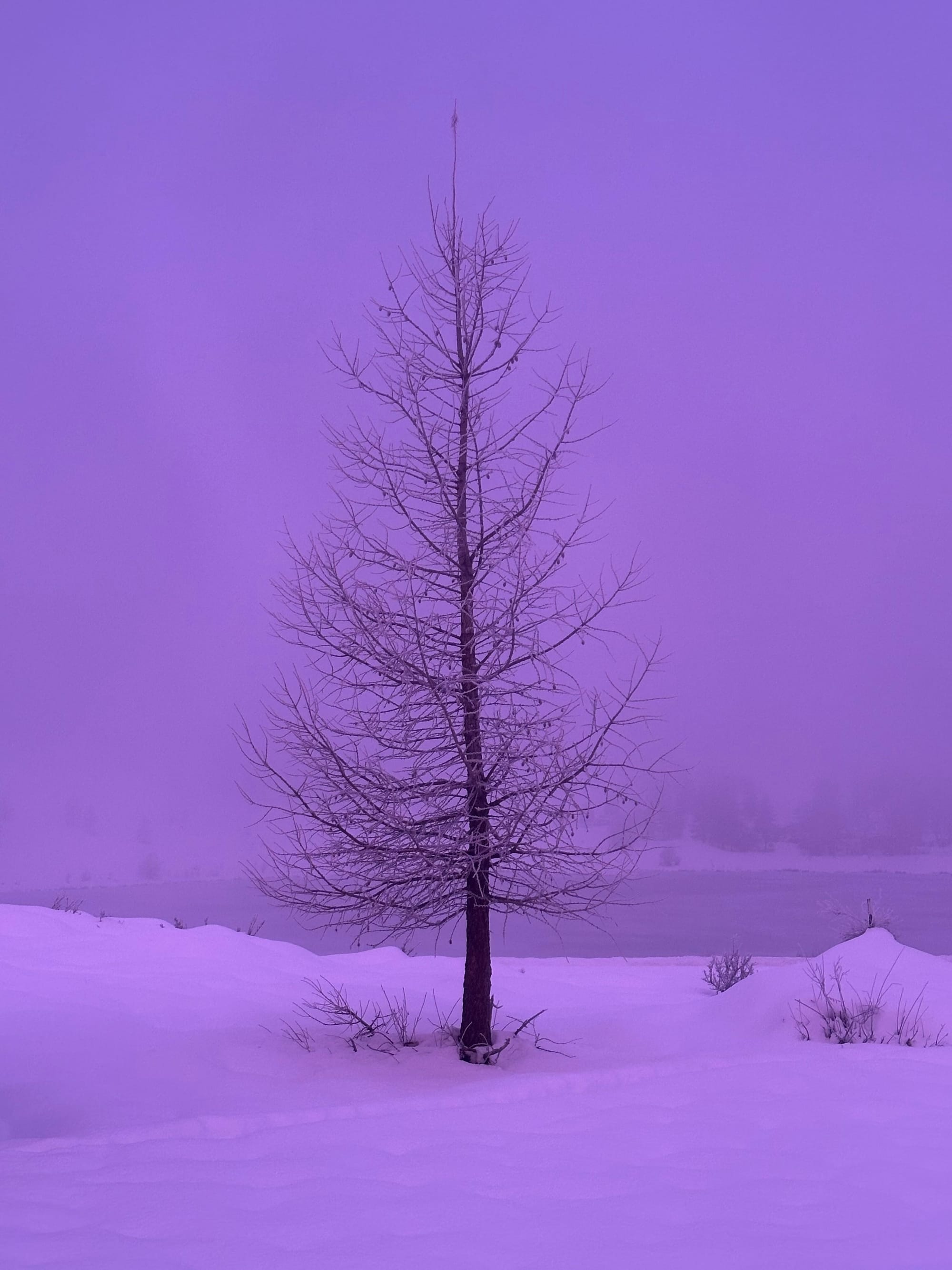 Early in the week, we also had one glorious morning of mostly clear skies, though shifting layers of valley fog kept hiding, then revealing, the sky, and clouds from another incoming snowstorm filled the valley by midday.
