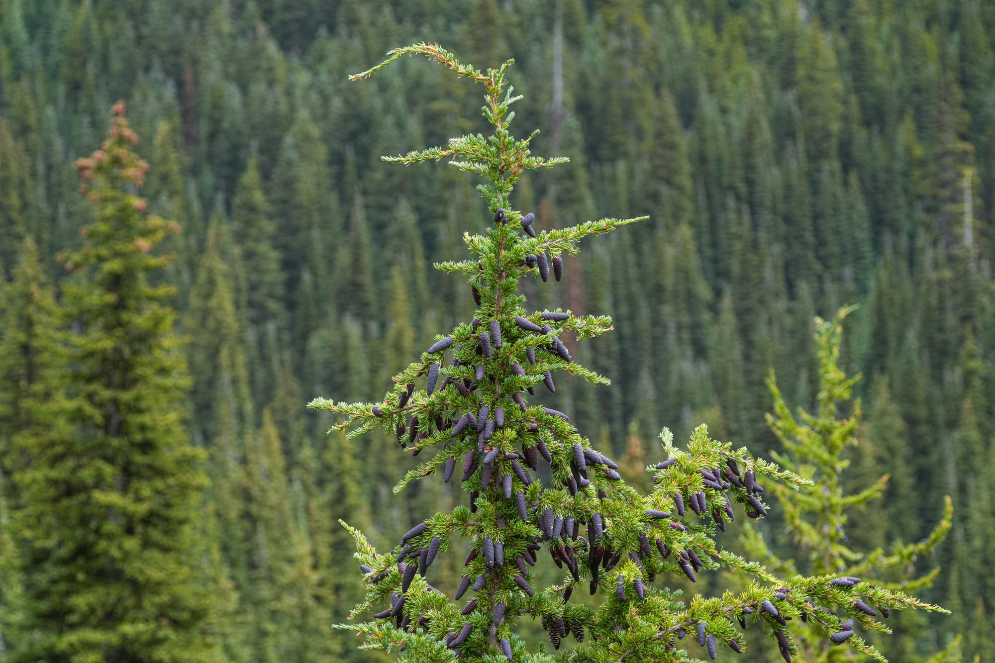 It's the season for cones. For example, Pacific silver fir (left), mountain hemlock (middle), and subalpine larch (right). Photos by David Lukas