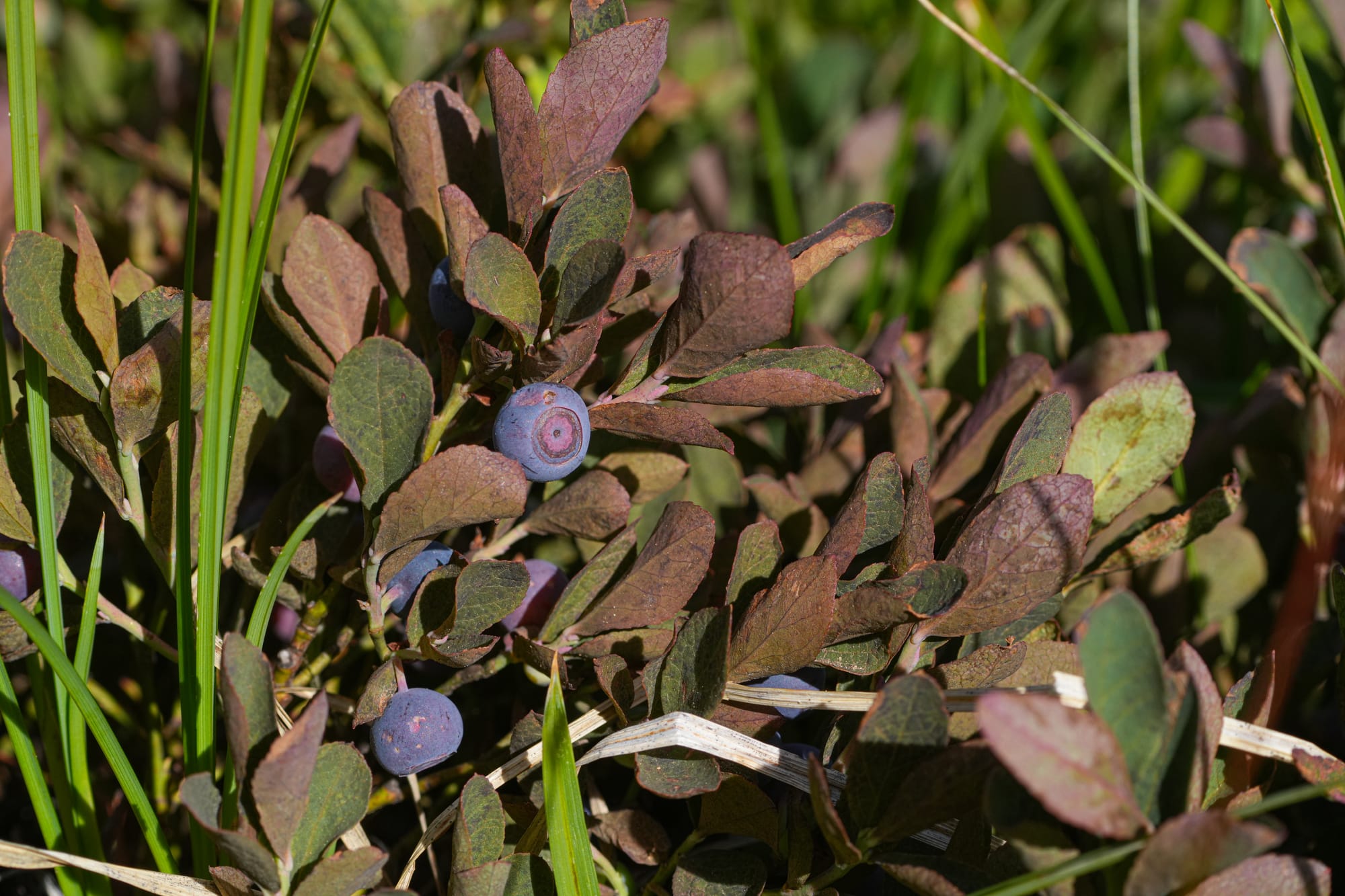 Cascade huckleberry (Vaccinium deliciosum) grows as a low dense shrub with white coated berries. This is the huckleberry that turns fiery red in late summer. Photos by David Lukas