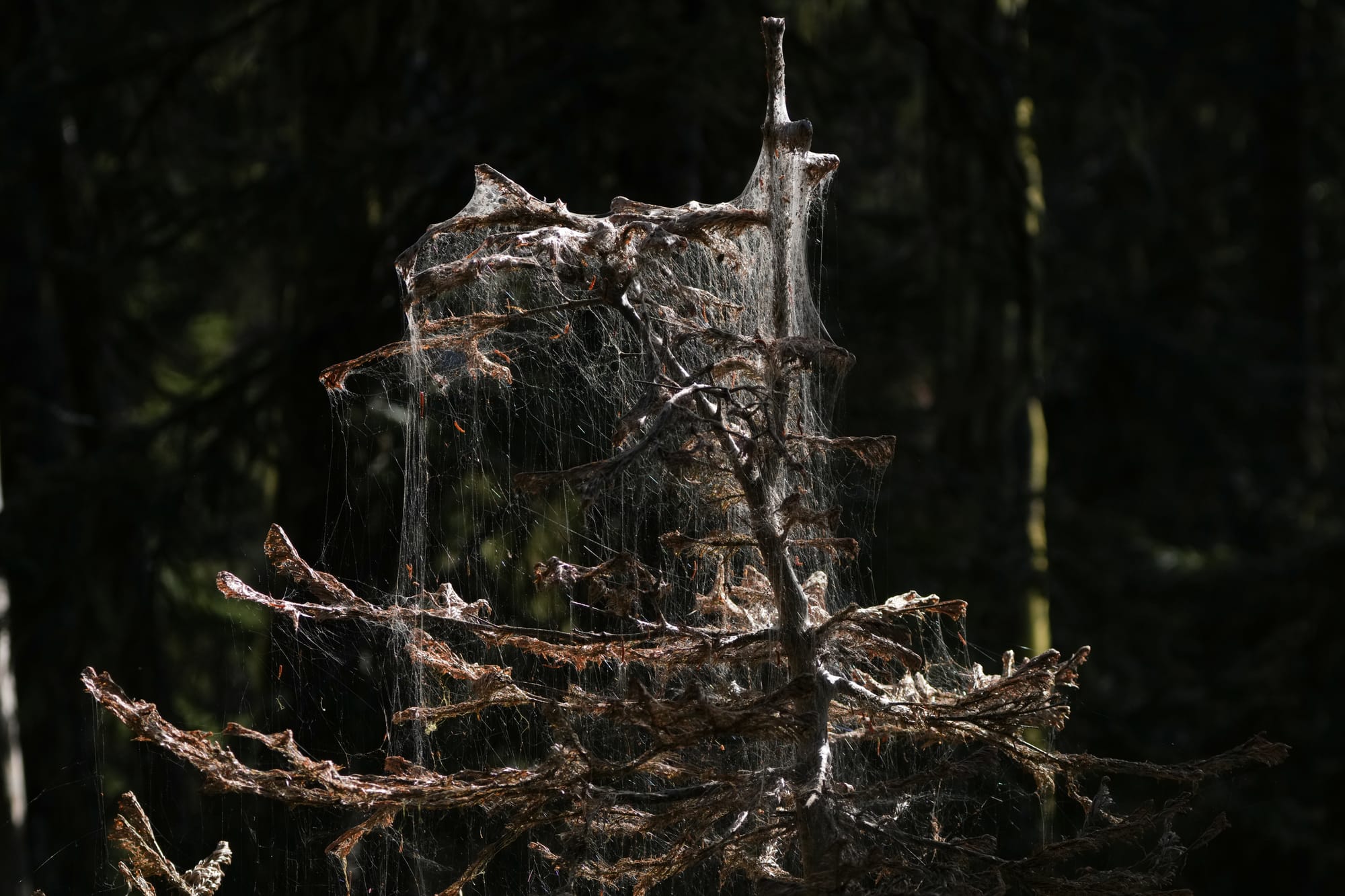 Another stress that plants face, especially in such dry conditions, are episodic insect outbreaks. In the Nature Notes newsletter a few weeks ago, we mentioned the extensive outbreak of spruce budworm around Rainy Pass. I don't know that I've ever seen a spruce budworm so it prompted me to take a closer look.
