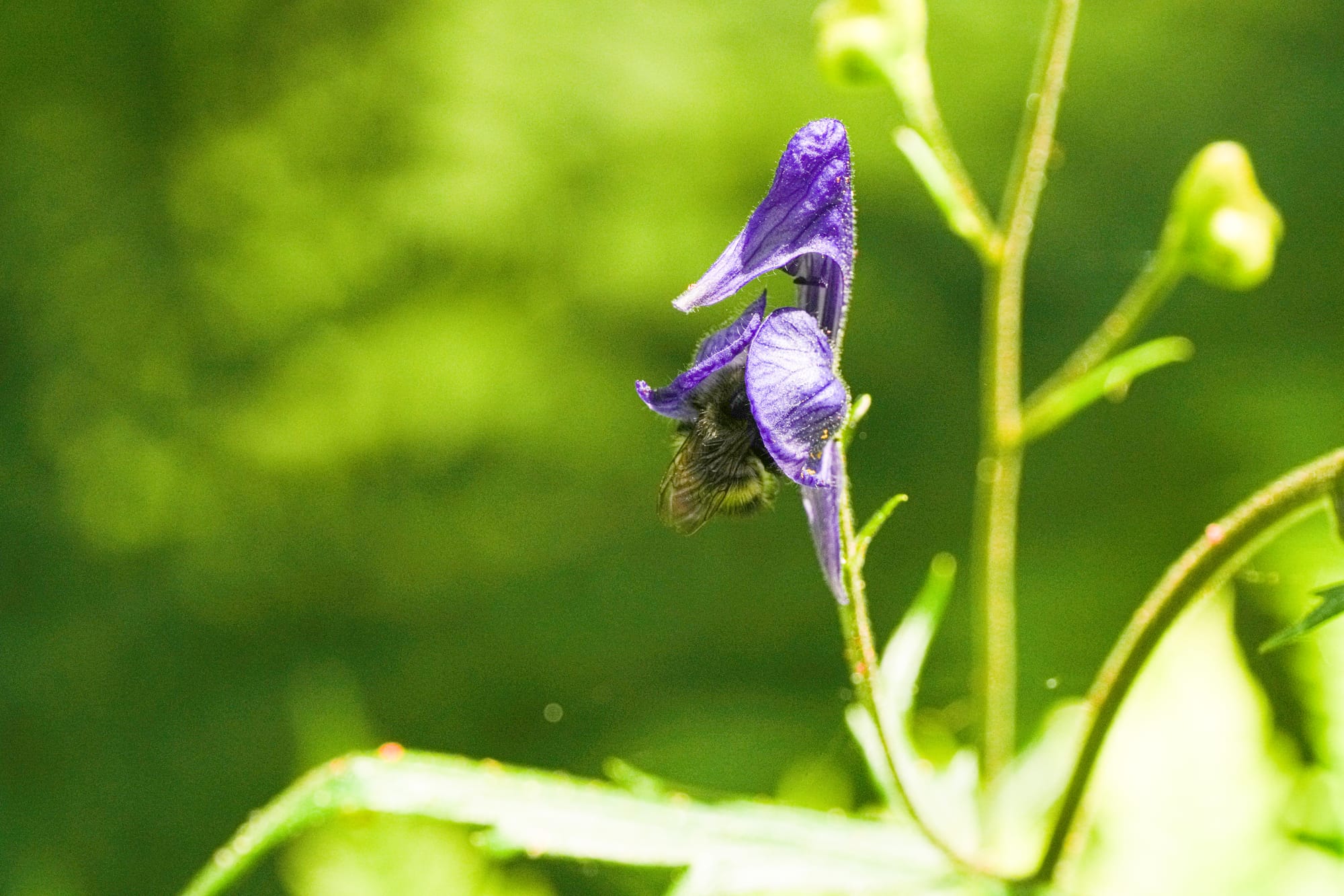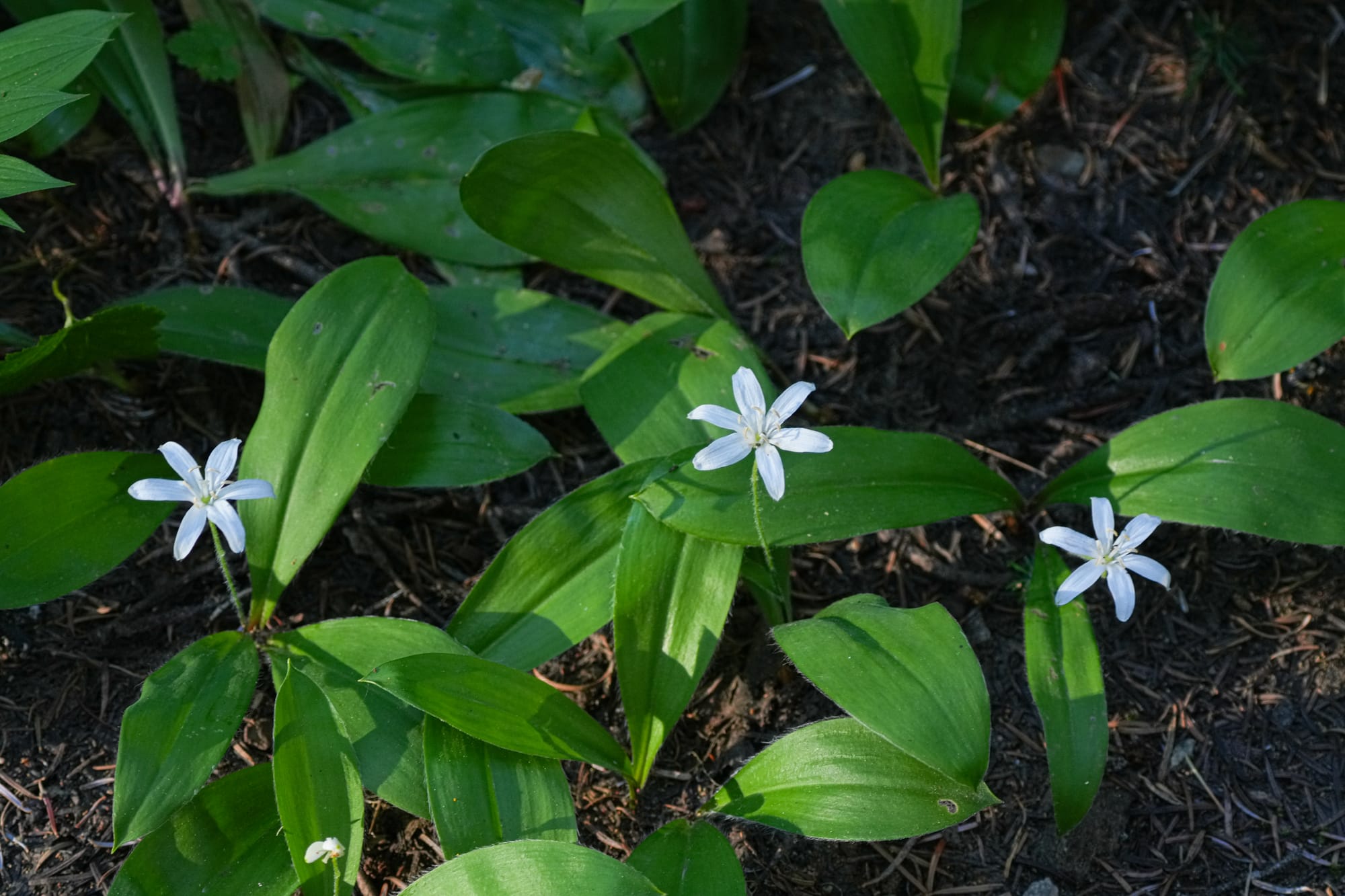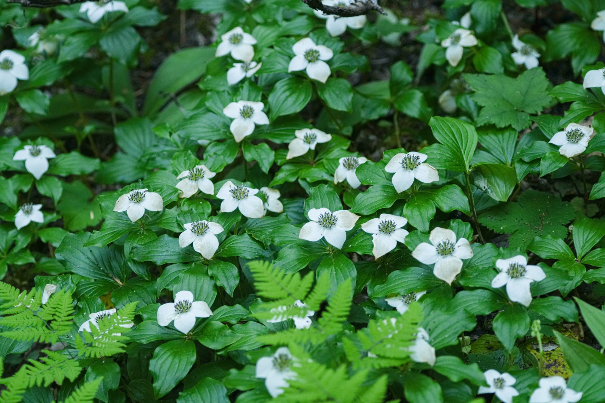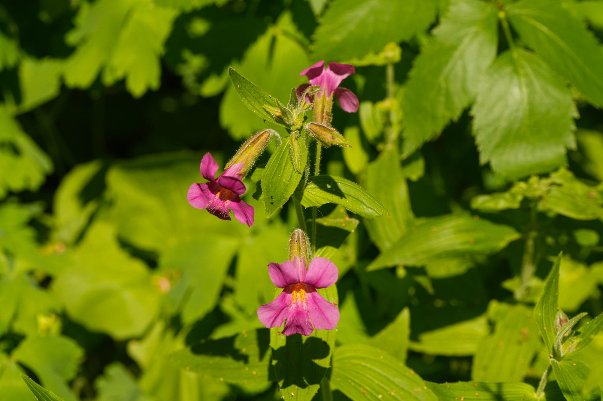The other type of experience is to stay in the deep, shaded forest where there are a surprising number of very different flowers, especially around moist seeps and small sunny openings. Here you'll discover the glittering white flowers of queen's cup lily and bunchberry, along with fluorescent pink monkeyflowers, and purple monkshoods.