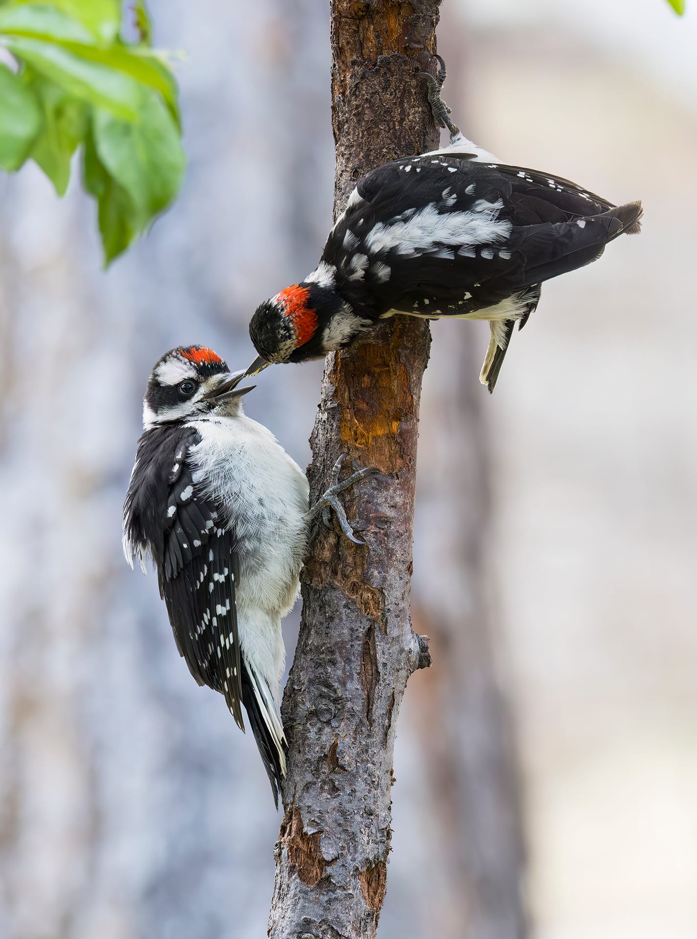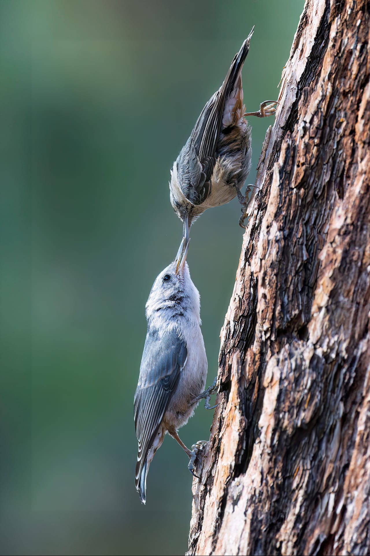 White-breasted nuthatch, hairy woodpecker, and western kingbird feeding babies. Photos by Peter Bauer