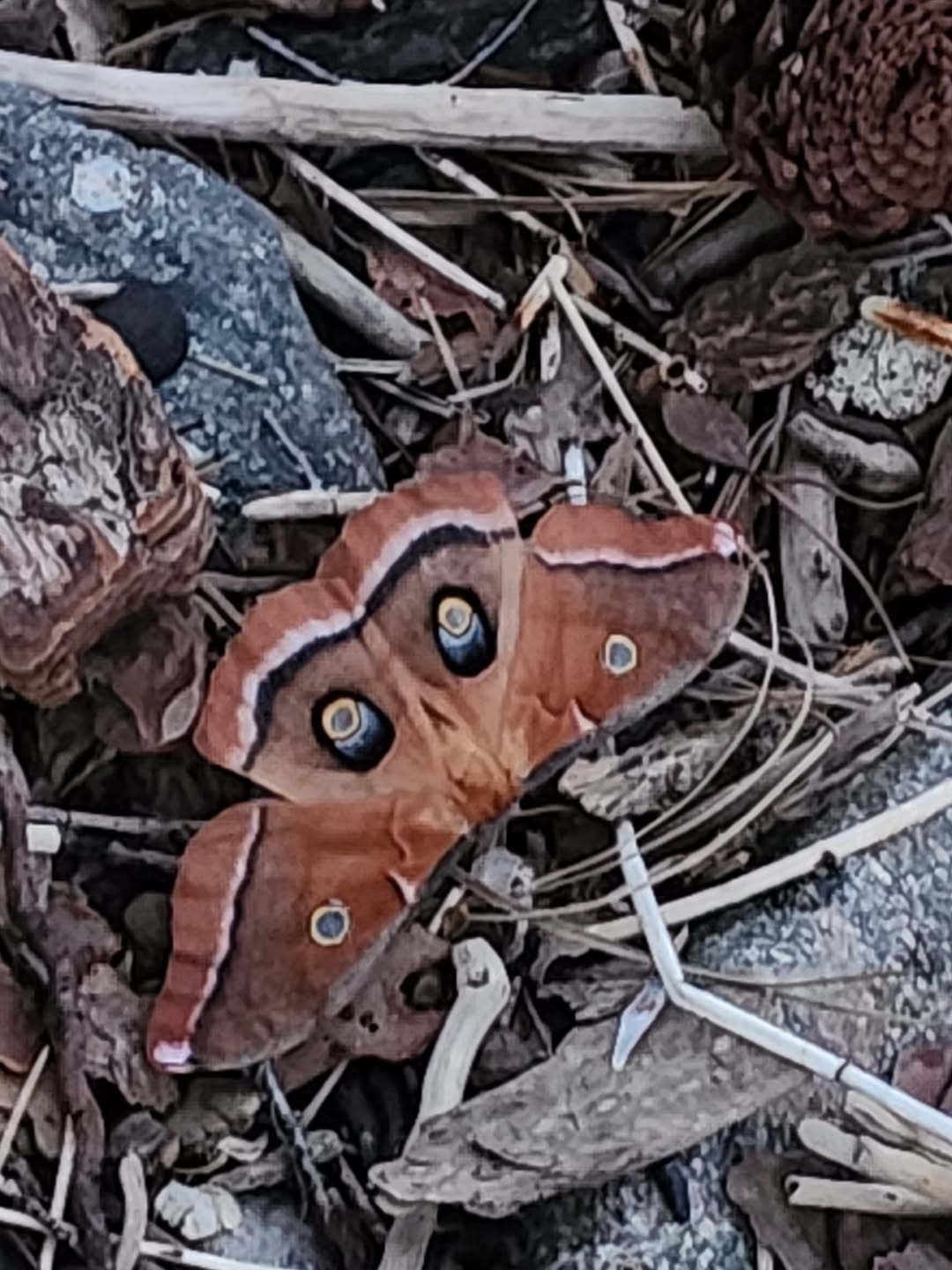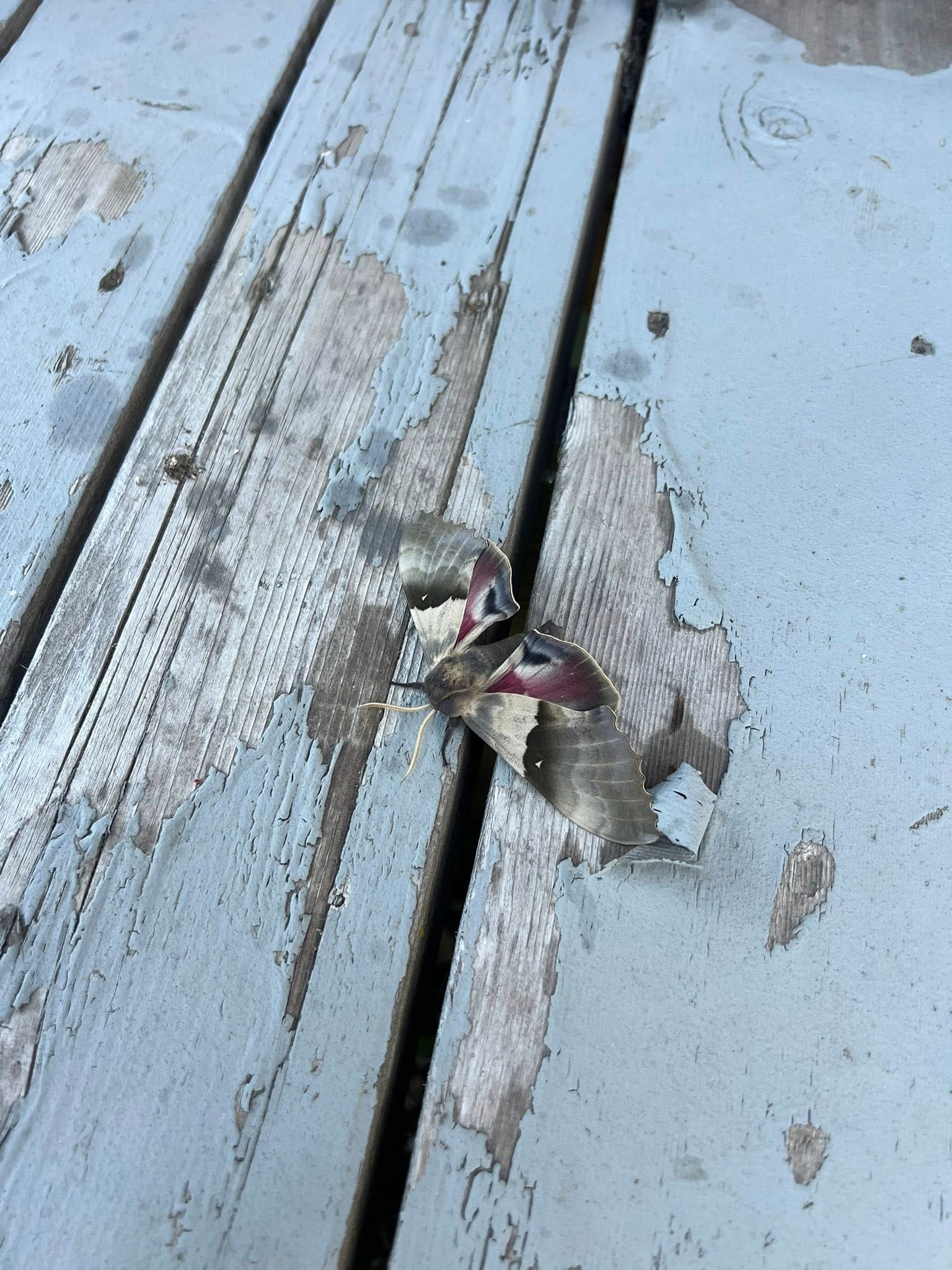 A big reddish polyphemus moth (photo by Shelley Khorrami) and one of our sphinx moths (photo by Cathy Upper).