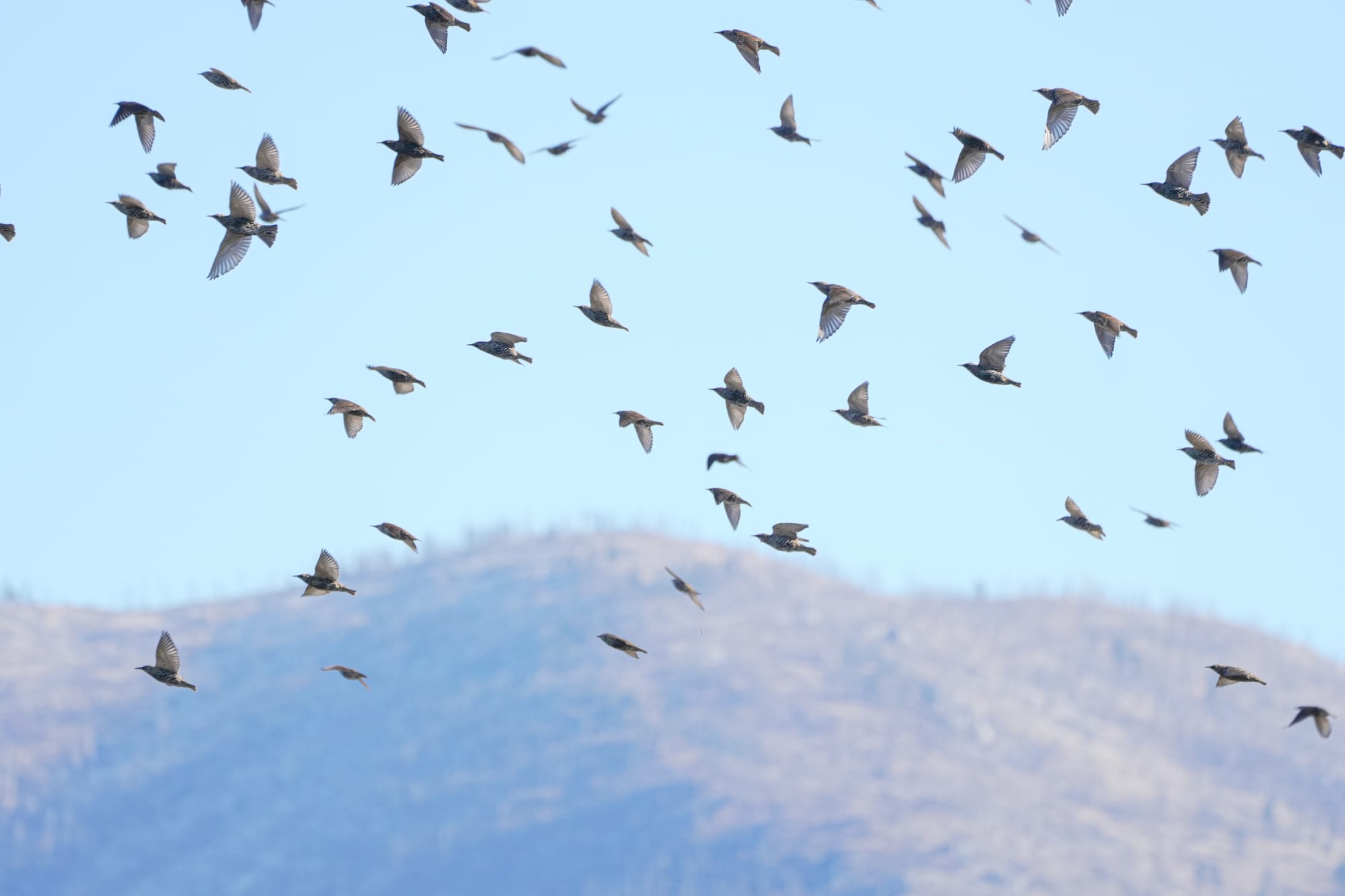 Snapshots of American crow (left) and European starling flocks (right) that were too big to fit into a single image. Photos by David Lukas