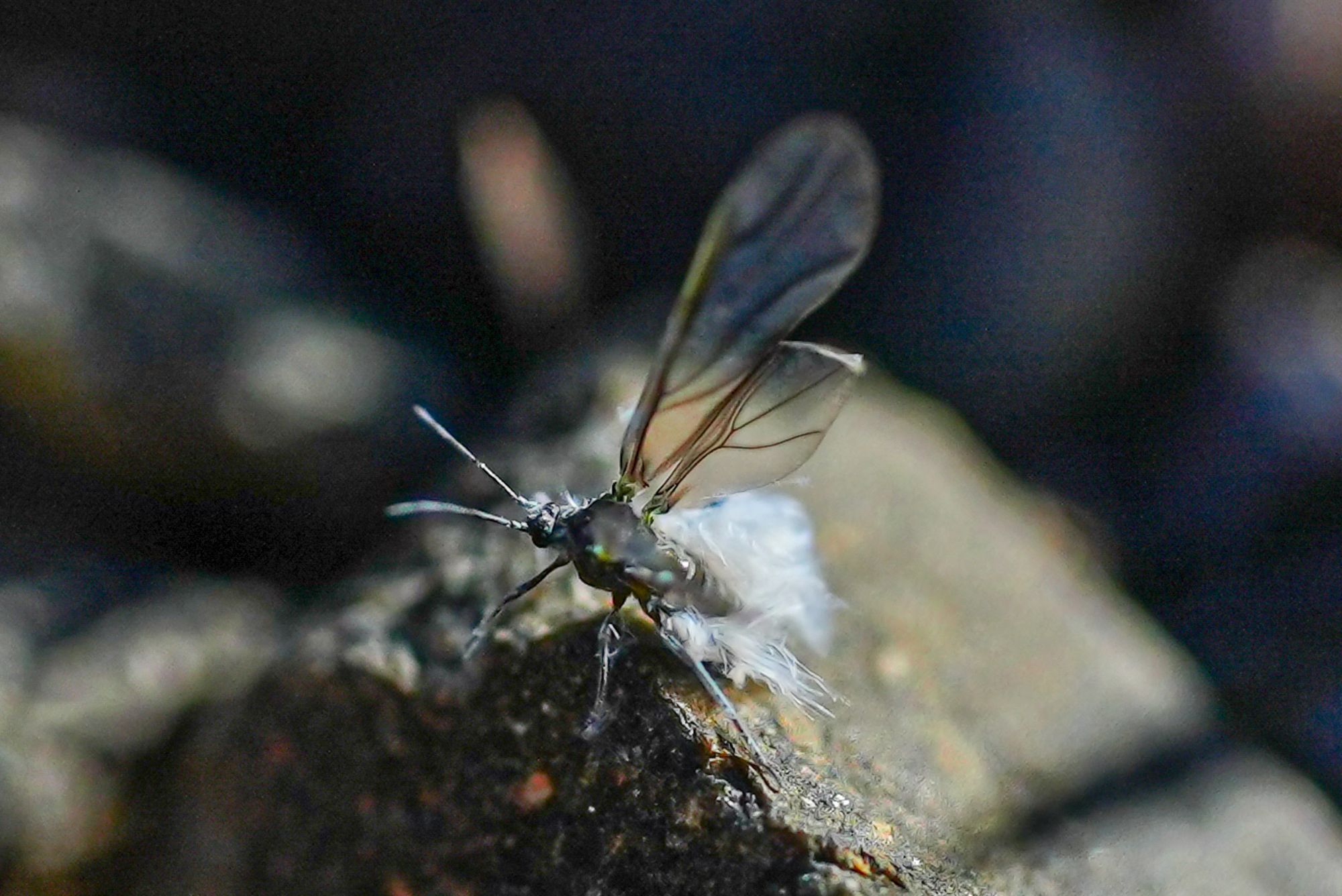 The most conspicuous insects this week have been woolly aphids, which make an appearance every year after insect-eating birds migrate south. Soft and vulnerable, these winged aphids fly around in search of mates, and on still, sunny days you might see lots of them backlit in the sun. You can't help but notice the white fluff on their bodies; these are strands of wax that they produce to deter predators (which works because wax is almost impossible to digest).