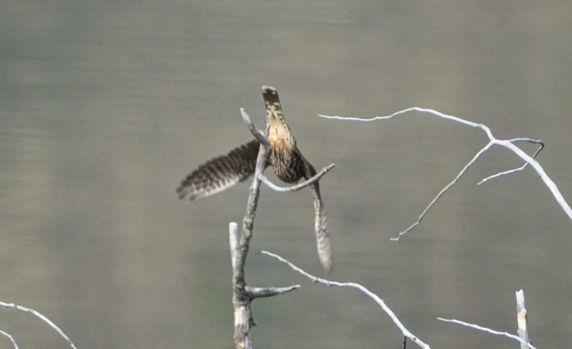 Merlins are almost exclusively a passing migrant or winter visitor in the Methow Valley, mostly arriving from the north (they may occasionally nest at higher elevations in the North Cascades). These hyper-vigilant, extremely fast fliers specialize in hunting shorebirds, but I think the one I saw at Big Twin Lake was eating dragonflies.